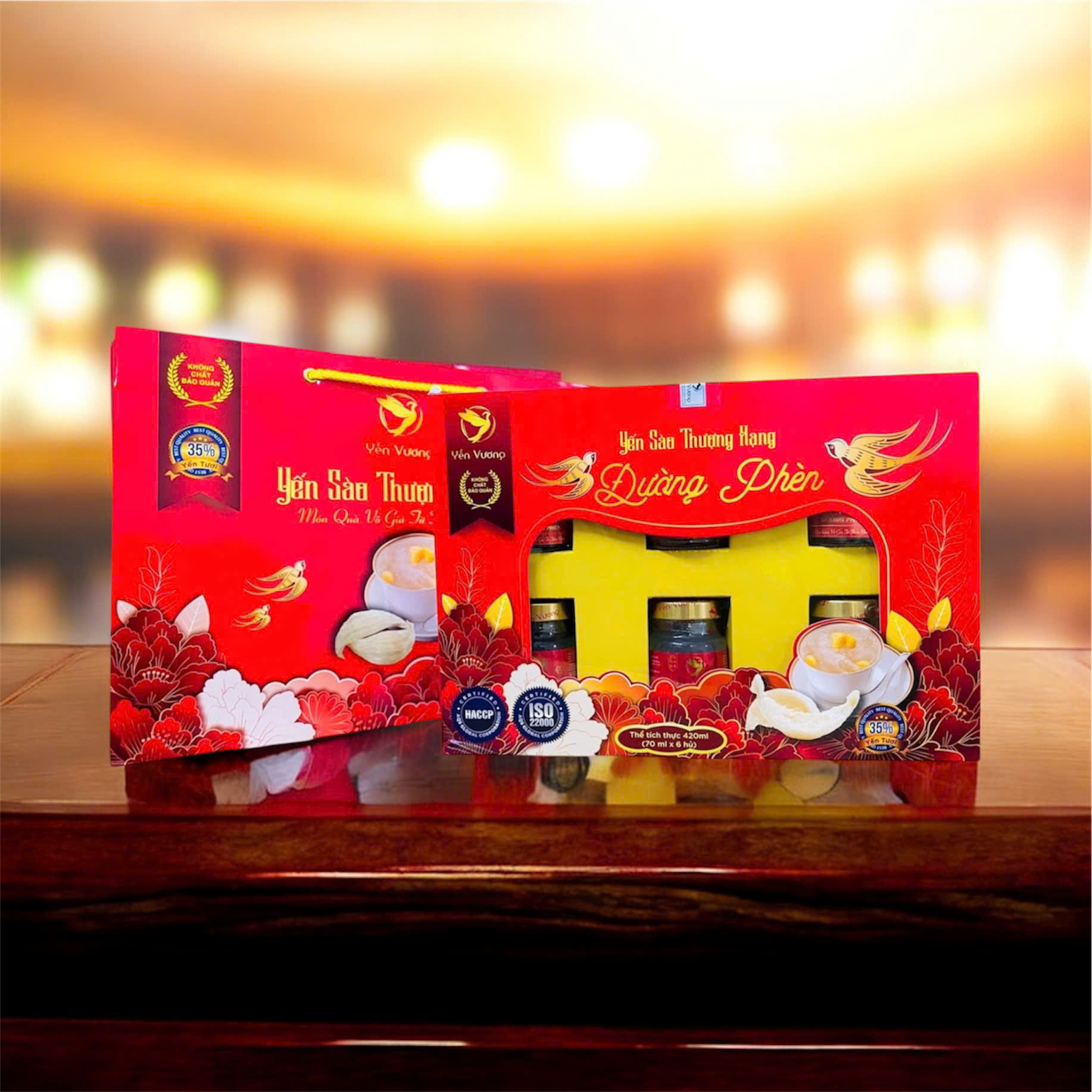 Hộp quà lớn 6 hũ yến Vương kèm túi 70ml Đường Phèn
