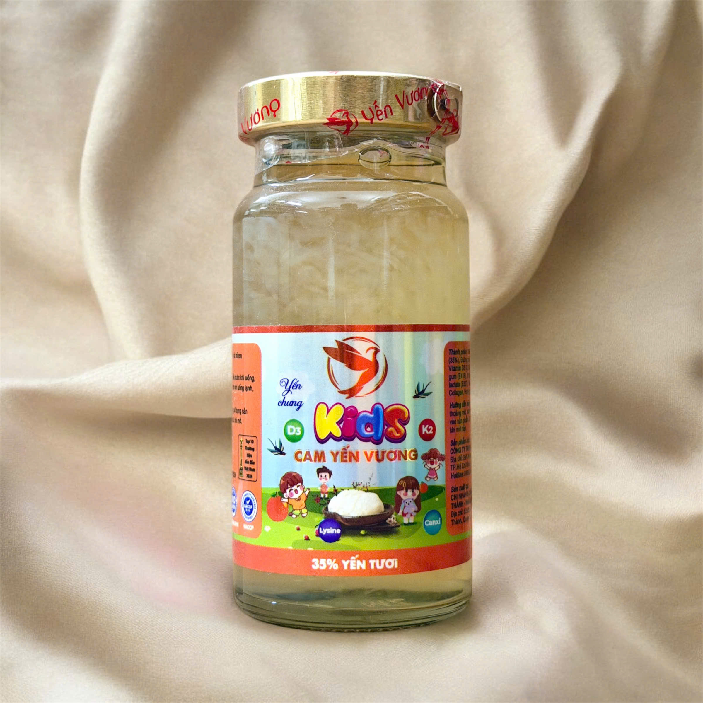 Yến chưng Kids Cam Yến Vương là sự kết hợp hoàn hảo giữa tổ yến nguyên chất và công thức chưng cất hiện đại, mang đến giải pháp chăm sóc sức khỏe cao cấp, tiện dụng mọi lúc mọi nơi.